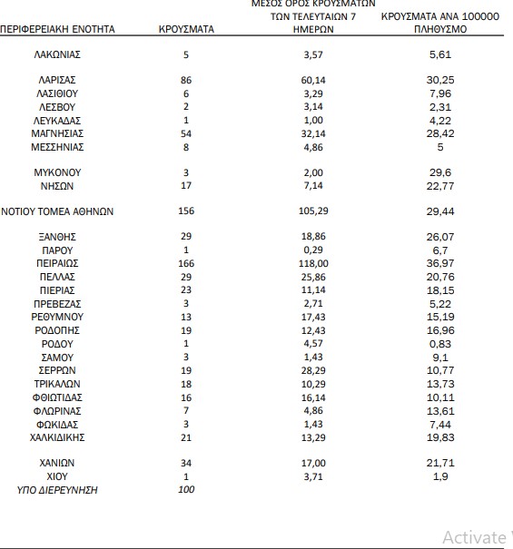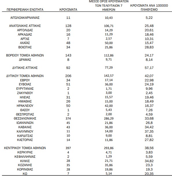 Αναλυτικότερα τα κρούσματα στις περιφερειακές ενότητες που ανήκουν στην Αττική: