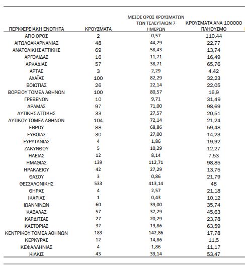 Αναλυτικότερα τα κρούσματα στις περιφερειακές ενότητες που ανήκουν στην Αττική: