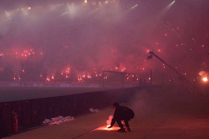 Φυσικά, μέχρι να καθαρίσει η ατμόσφαιρα καθυστέρησε και η έναρξη του αγώνα.