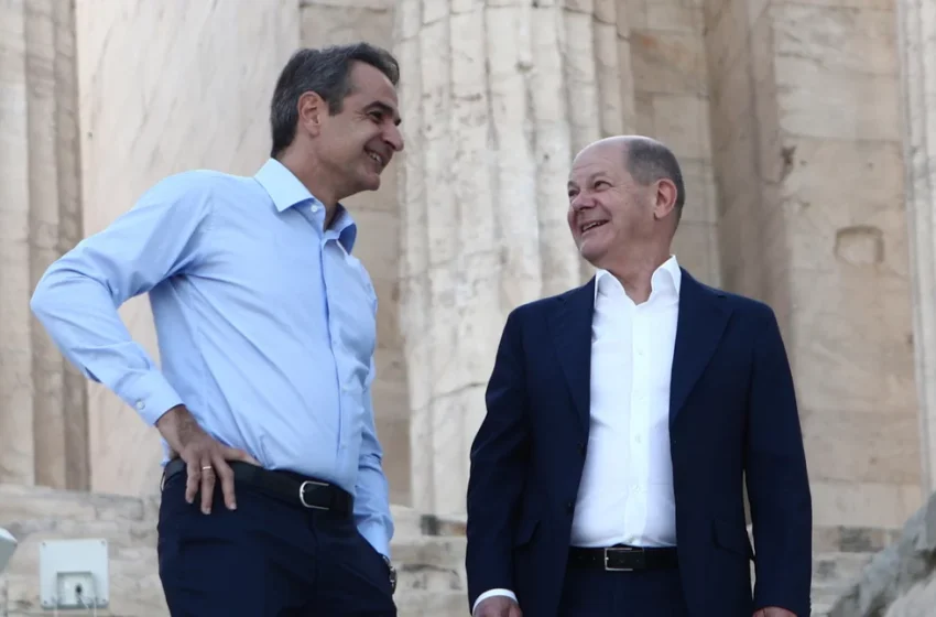 Στην Ακρόπολη ανέβηκαν, στις 9 το πρωί ακριβώς, ο Γερμανός καγκελάριος Όλαφ Σολτς και ο πρωθυπουργός Κυριάκος Μητσοτάκης.