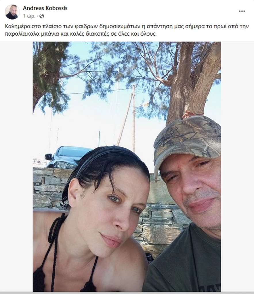 «Καλημέρα. Στο πλαίσιο των φαιδρών δημοσιευμάτων, η απάντησή μας σήμερα το πρωί από την παραλία. Καλά μπάνια και καλές διακοπές σε όλες και όλους», έγραψε ο στιχουργός.