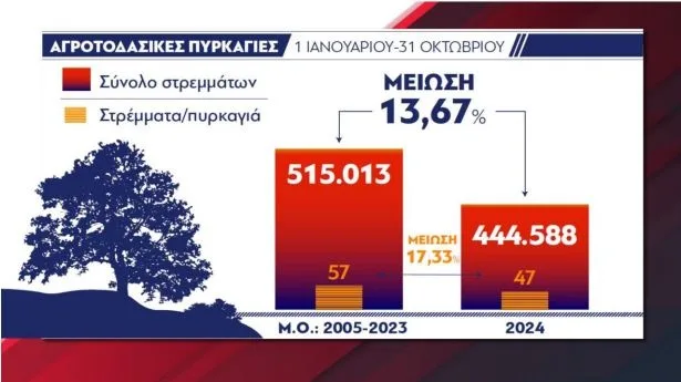 Παρόλο, όμως, που είχαμε περισσότερες ενάρξεις, είχαμε μείωση των στρεμμάτων που κάηκαν στο σύνολο κατά 13,67 %.