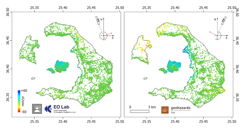 Αξιοποιώντας την υπηρεσία SNAPPING (Surface motioN mAPPING) συγκέντρωσε πολύτιμες πληροφορίες, οι οποίες και έδειξαν μετακινήσεις της επιφάνειας στο βόρειο τμήμα της καλδέρας του ηφαιστείου. Μάλιστα, την εγκυρότητα των πληροφοριών αυτών ήρθαν να ενισχύσουν οι μετρήσεις από τοπικά σεισμολογικά δίκτυα και μόνιμους σταθμούς GNSS του ΙΜΠΗΣ, γεγονός που προκάλεσε την κινητοποίηση όχι μόνο των επιστημόνων αλλά της ίδιας της Πολιτείας.