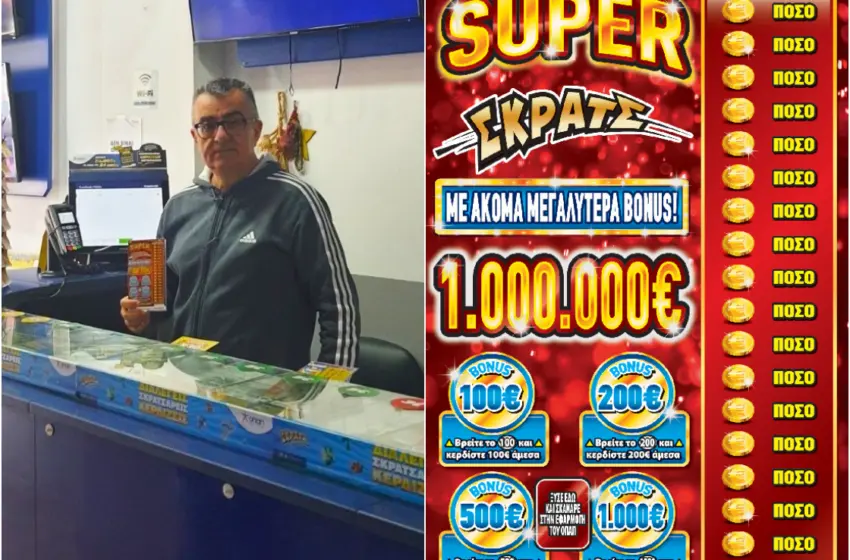 Εκατομμυριούχος στη στιγμή – Τυχερός παίκτης στη Σούδα Χανίων κέρδισε 1.000.000 ευρώ στο παιχνίδι “SUPER ΣΚΡΑΤΣ”