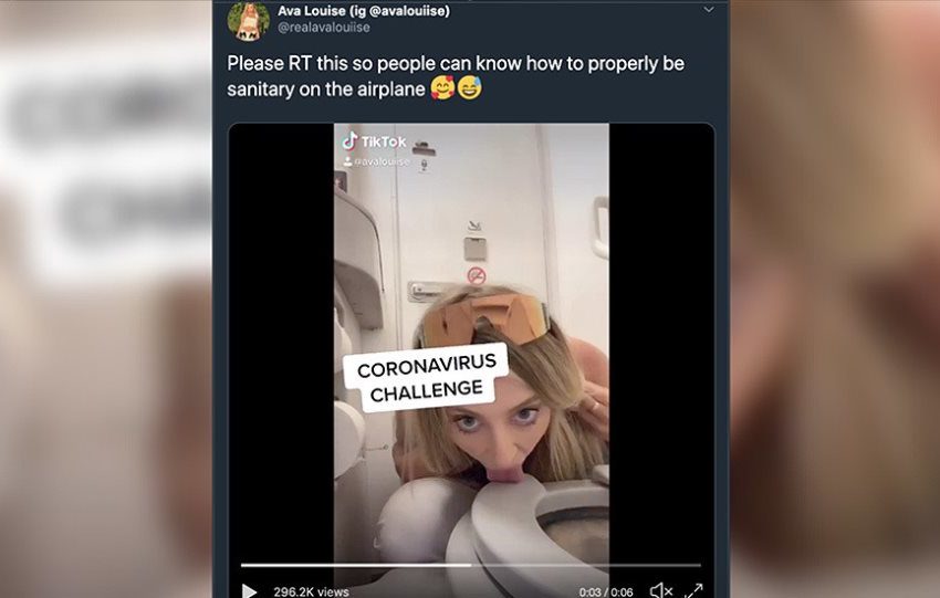 Σάλος με ασυνείδητη γυναίκα που γλείφει τουαλέτα αεροπλάνου (vid) Κόσμος Η Συντακτική ομάδα του Libre 16 Μαρτίου, 2020 Share Tweet Email Το βίντεο της νεαρής γυναίκας έχει συγκεντρώσει 300.000 προβολές από το Σάββατο που ανέβηκε. ‘#Coronavirus challenge’… it’s a thing 21yo Ava Louise is basking in viral attention after licking a toilet seat on a plane She also said that ‘coronavirus is for poor people’ and she hopes it will take her out next, so that she never gets old and ‘ugly’ pic.twitter.com/9zil0uftYC — RT (@RT_com) March 16, 2020
