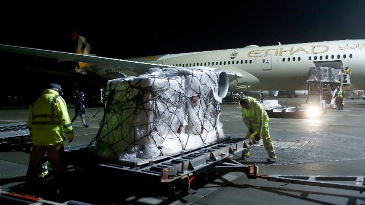 Υγειονομικό υλικό το οποίο θα διατεθεί άμεσα στις ιατρικές μονάδες της χώρας για την ενίσχυση των αναγκών στη μάχη κατά του COVID-19 απέστειλαν τα Ηνωμένα Αραβικά Εμιράτα στη χώρα μας. Το υγειονομικό υλικό περίπου 11 τόνων έφτασε απόψε στο αεροδρόμιο «Ελ. Βενιζέλος» με ειδική πτήση της Etihad Airways και περιλαμβάνει -μεταξύ άλλων- ειδικές φόρμες ιατρικής προστασίας, ιατρικά γάντια, καλύμματα ιατρικών παπουτσιών και απολυμαντικά.
