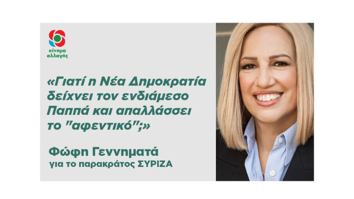 Γεννηματά: Γιατί η ΝΔ δεν καταλογίζει πολιτική ευθύνη στον Α. Τσίπρα κι αναδεικνύει μόνο τις ευθύνες του Ν. Παππά;