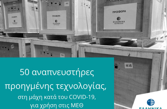 Ο Όμιλος Ελληνικά Πετρέλαια συνεχίζει να στέκεται αρωγός στο Εθνικό Σύστημα Υγείας, προσφέροντας 50 αναπνευστήρες προηγμένης τεχνολογίας για τον εξοπλισμό των Μονάδων Εντατικής Θεραπείας. Οι αναπνευστήρες θα διατεθούν άμεσα από το Υπουργείο Υγείας για την κάλυψη των αναγκών στα νοσοκομεία αναφοράς για ασθενείς που νοσούν από τον COVID-19, στο πλαίσιο της συνεχιζόμενης μάχης για την αντιμετώπιση της πανδημίας.