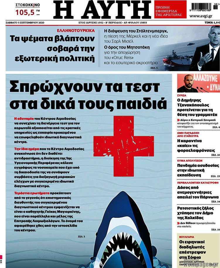 Υπάρχουν όμως και κάποιες άλλες ενδιαφέρουσες πτυχές του θέματος, έτσι όπως αναδεικνύονται και από δύο εφημερίδες, την «Αυγή» που το έχει βασικό της θέμα, με τίτλο, «Σπρώχνουν τα τεστ στα δικά τους παιδιά», και την «Εφημερίδα των Συντακτών», με τίτλο, «Το υπουργείο Υγείας προωθεί ιδιωτικό διαγνωστικό όμιλο».