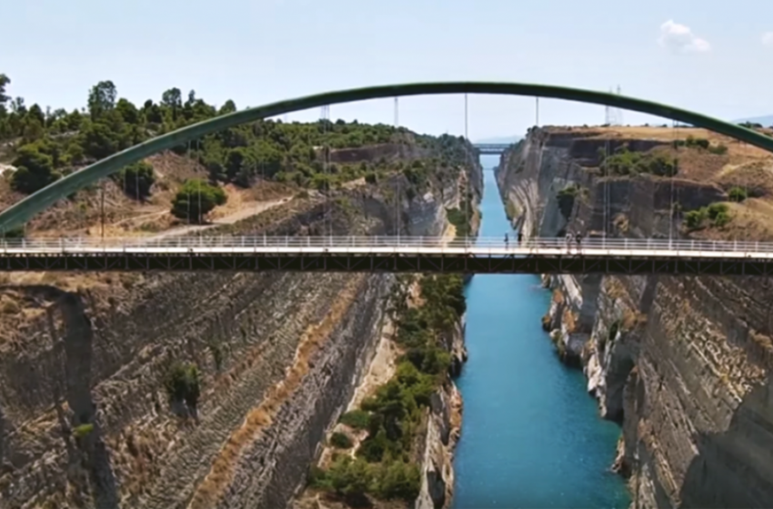 Φορτηγό πλοίο εγκλωβίστηκε στον Ισθμό της Κορίνθου (vid)