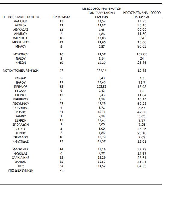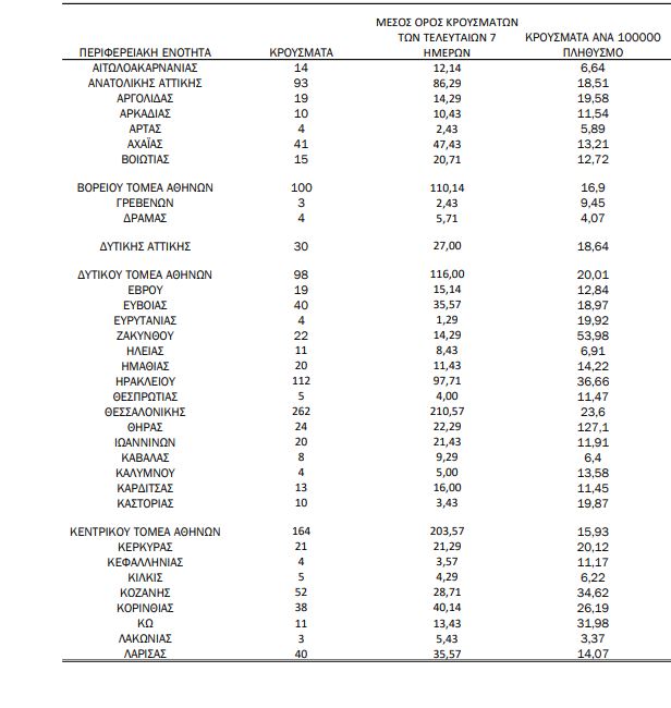 Αναλυτικά τα κρούσματα ανά περιοχή