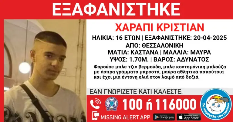 Οποιοσδήποτε έχει κάποια πληροφορία, παρακαλείται να επικοινωνήσει τηλεφωνικά με «Το Χαμόγελο του Παιδιού» όλο το 24ωρο, στην «Ευρωπαϊκή Γραμμή για τις Εξαφανίσεις», σε όλα τα Αστυνομικά Τμήματα της χώρας αλλά και μέσω της εφαρμογής MissingAlertapp οπού υπάρχει ζωντανή ενημέρωση για την εξαφάνιση.