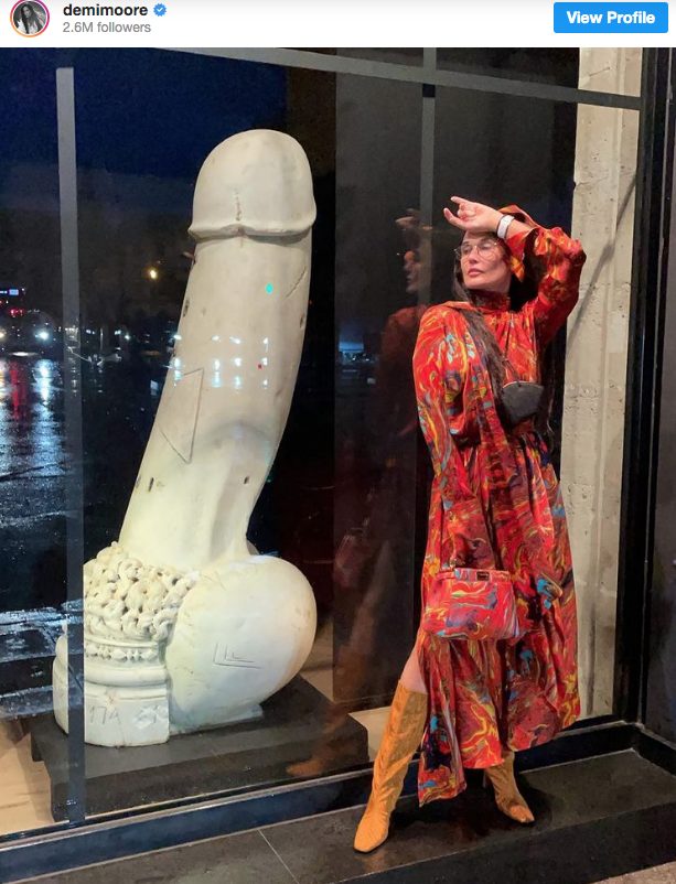 Η Ντέμι Μουρ ποζάρει δίπλα σε πέτρινο πέος και γίνεται viral