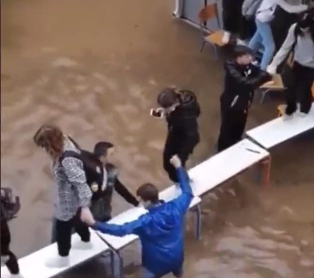 Eικόνες ντροπής- Νέα Φιλαδέλφεια: Συγκλονιστικό βίντεο με μαθητές σε σχολείο που πλημμύρισε