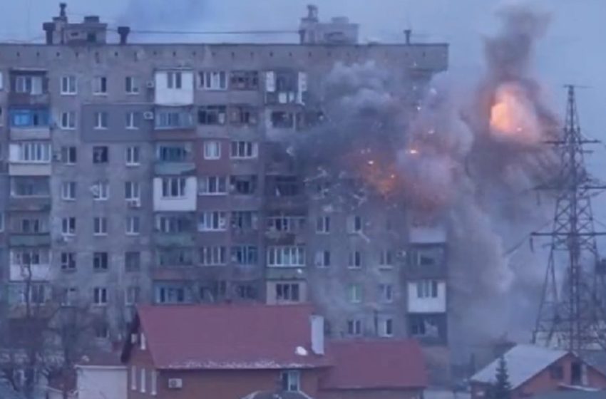 Η στιγμή του βομβαρδισμού πολυκατοικίας στη Μαριούπολη (vid)