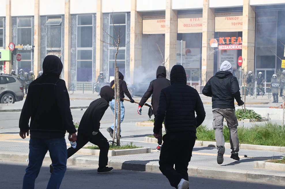 Επεισόδια σημειώνονται αυτή την ώρα έξω από τον Νέο Σιδηροδρομικό Σταθμό Θεσσαλονίκης μεταξύ κουκουλοφόρων και ΜΑΤ.