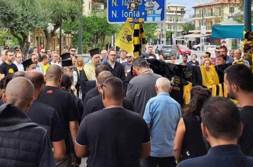 Αρχιερατικό τρισάγιο στη μνήμη του Μιχάλη Κατσουρή, στο σημείο που ο αδικοχαμένος φίλαθλος της ΑΕΚ έχασε τη ζωή του κατά τα αιματηρά επεισόδια, που σημειώθηκαν τη Δευτέρα έξω από το γήπεδο της ΑΕΚ, τέλεσε σήμερα ο Μητροπολίτης Νέας Ιωνίας, Φιλαδέλφειας, Ηρακλείου και Χαλκηδόνος κ. Γαβριήλ.