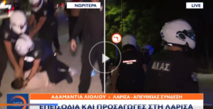 Η διαμαρτυρία των διαδηλωτών πληγέντων από τις πλημμύρες έξω από το Συντονιστικό της Λάρισας όπου ο Κυριάκος Μητσοτάκης ανακοίνωνε μέτρα, κατέληξε με ένταση, επεισόδια και άγρια καταστολή από την Αστυνομία. Η κάμερα του OPEN κατέγραψε στα πλάνα της αστυνομικούς να έχουν πιάσει έναν κάτοικο της περιοχής και να τον έχουν ρίξει στο έδαφος. Ένας αστυνομικός … Συνεχίστε να διαβάζετε το Αστυνομικός πιέζει με το γκλοπ τον λαιμό πλημμυροπαθή – Βίντεο ντοκουμέντο (vid).