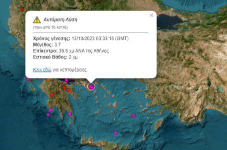 Αισθητός σε πολλές περιοχές της Αττικής λίγο μετά τις 6.30 το πρωί της Παρασκευής. Σύμφωνα με το Γεωδυναμικό Ινστιτούτο το επίκεντρο βρίσκεται στον θαλάσσιο χώρο 7 χιλιόμετρα ανατολικά της Βραυρώνας, με εστιακό βάθος τα 5 χλμ και ένταση 3,7 Ρίχτερ. Το γεγονός πως ήταν σε χαμηλό εστιακό βάθος και πολύ κοντά στην Αττική συνετέλεσαν ώστε … Συνεχίστε να διαβάζετε το Σεισμός στην αν. Αττική αισθητός σε πολλές περιοχές.