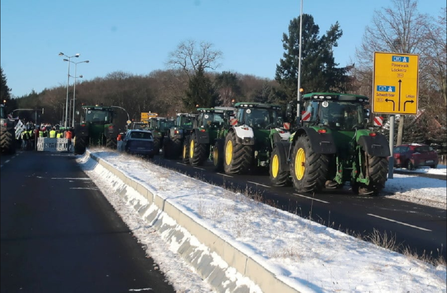 Οι Γερμανοί αγρότες έχουν αποκλείσει τα κέντρα των πόλεων, τους αυτοκινητόδρομους και τις απολήξεις των αυτοκινητοδρόμων με τρακτέρ, διακόπτοντας την κυκλοφορία σε όλη τη χώρα, σε μια κλιμακούμενη διαμάχη για τις σχεδιαζόμενες περικοπές στις φορολογικές ελαφρύνσεις και τις επιδοτήσεις στον αγροτικό τομέα. «Ασκούμε το βασικό δικαίωμά μας να ενημερώσουμε την κοινωνία και την πολιτική τάξη ότι η … Συνεχίστε να διαβάζετε το Γερμανία: Οι αγρότες κλείνουν δρόμους με τρακτέρ για το “κούρεμα” των επιδοτήσεων.