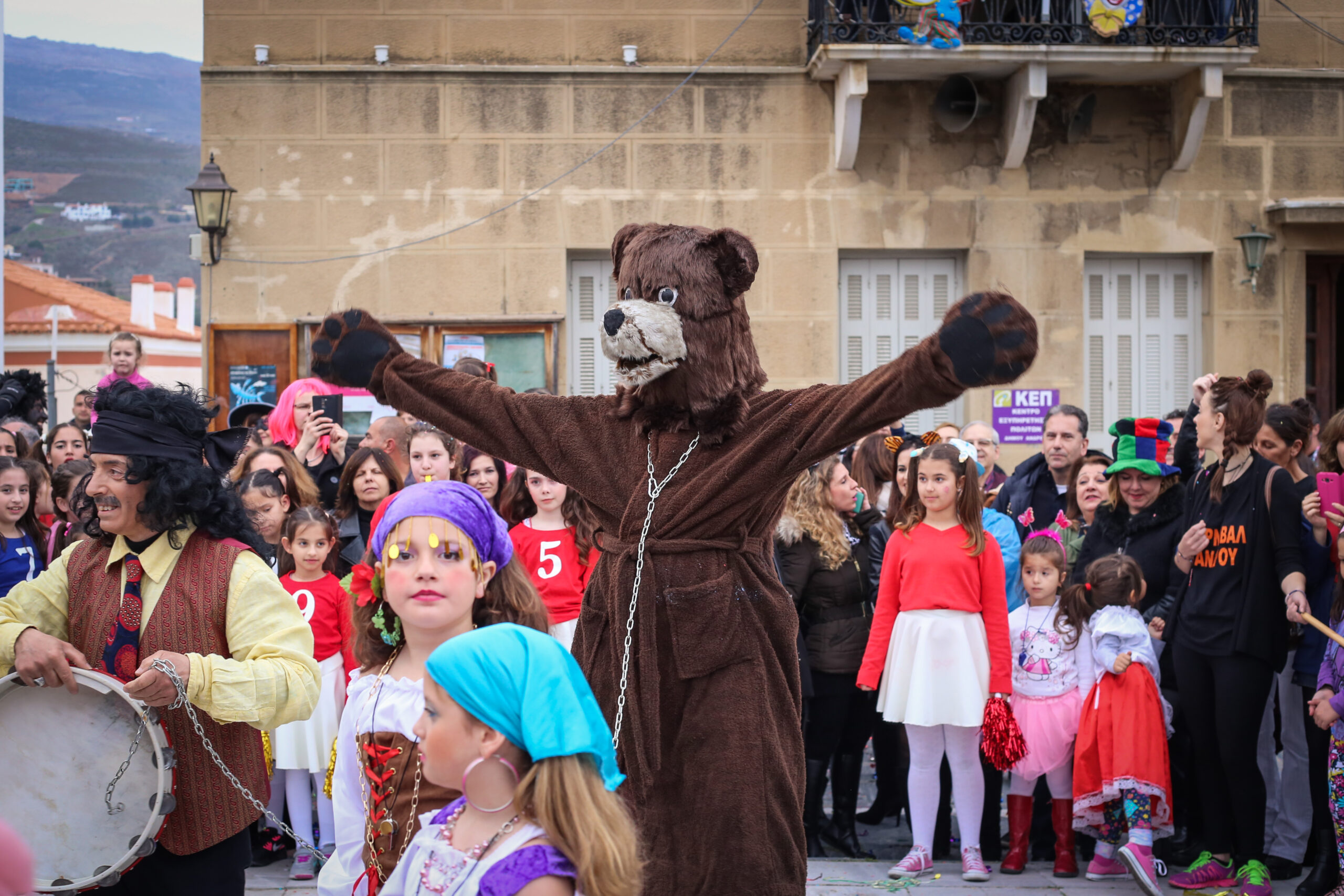 Μένουμε στην πλατεία, γιατί αμέσως μετά ξεκινά για τους μικρούς Ανδριώτες και τους επισκέπτες φυσικά, Κυνήγι Θησαυρού και δραστηριότητες για παιδιά από την ομάδα της κλόουν Γελαστούλας. Στις 13:30 η δράση θα μεταφερθεί λίγο παρακάτω, στη θέση Πόρτα και συγκεκριμένα στην Πλατεία Καΐρη, που κατά τα μεσαιωνικά χρόνια σήμαινε την είσοδο στο Κάτω Κάστρο. Εδώ, ανάμεσα στον χαρακτηριστικό μεγάλο πλάτανο, τη μαρμάρινη κρήνη του 1818 με τις γλυπτές διακοσμήσεις και την αψιδωτή στοά, θα στηθεί γαϊτανάκι και θα παρακολουθήσουμε το Σύλλογο Γυναικών Άνδρου αυτή τη φορά, επίσης σε παραδοσιακούς νησιώτικους χορούς.