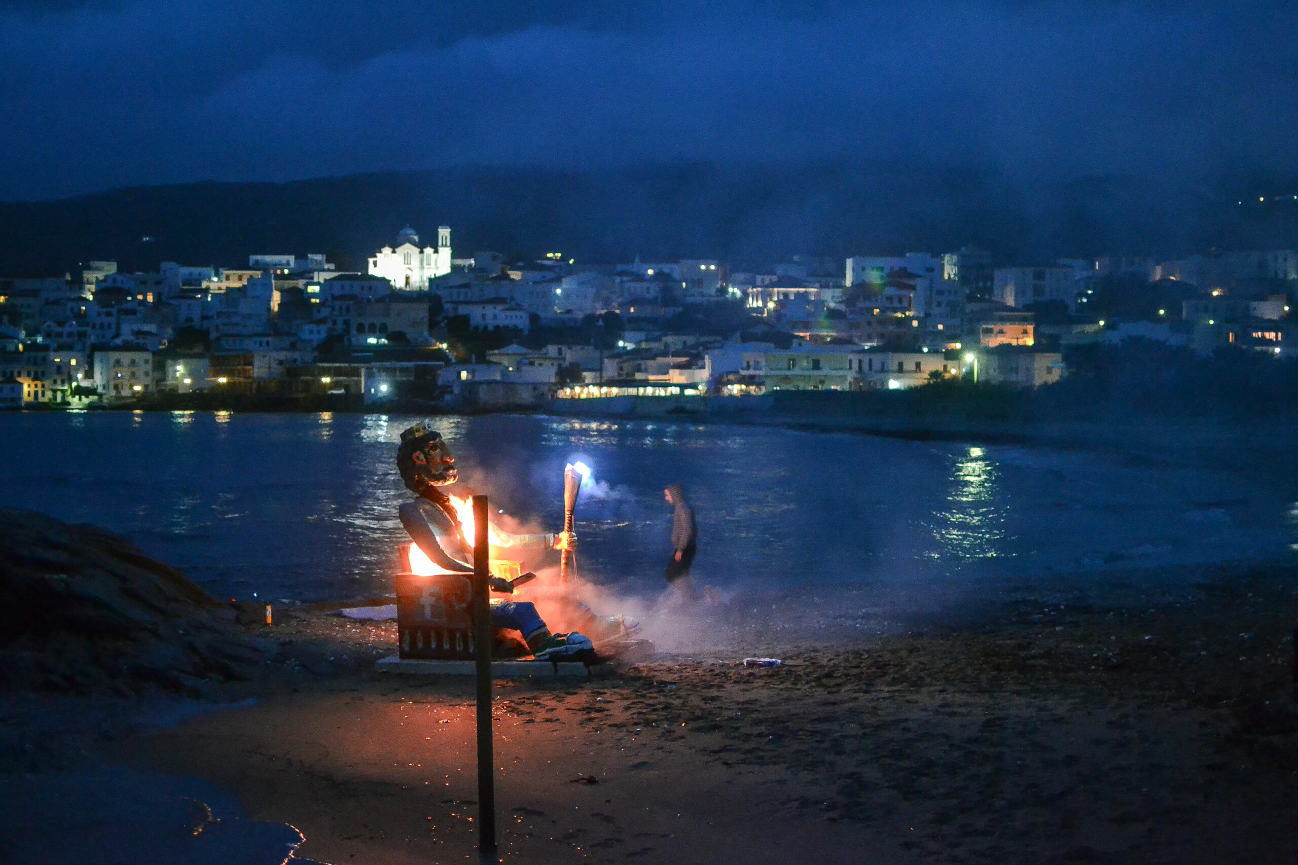 Το θεαματικό αποκορύφωμα και η ώρα για να αποχωριστούμε τις μάσκες και τις στολές μας θα έρθει όταν πέσει η νύχτα, αφού στις εννιά η παραλία του Νειμποριού θα φωτιστεί κι ο ουρανός θα γεμίσει λάμψη από τα πυροτεχνήματα και από την πυρά όπου θα καεί με όλες τις τιμές που του αρμόζουν, ο βασιλιάς Καρνάβαλος.