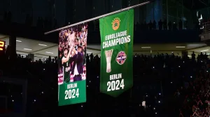 Τον ουρανό του κλειστού του ΟΑΚΑ κοσμεί από σήμερα το λάβαρο με το έβδομο ευρωπαϊκό τρόπαιο του Παναθηναϊκού, το οποίο προστέθηκε δίπλα στους υπόλοιπους τίτλους που έχουν πανηγυρίσει στην Ιστορία τους οι «πράσινοι», αλλά και στις εμβληματικές φωτογραφίες του Παύλου και Θανάση Γιαννακόπουλου. Το έβδομο αστέρι από την κατάκτηση της εφετινής Euroleague στο Βερολίνο και … Συνεχίστε να διαβάζετε το Παναθηναϊκός: Στον ουρανό του ΟΑΚΑ το λάβαρο από το έβδομο ευρωπαϊκό τρόπαιο (vid).