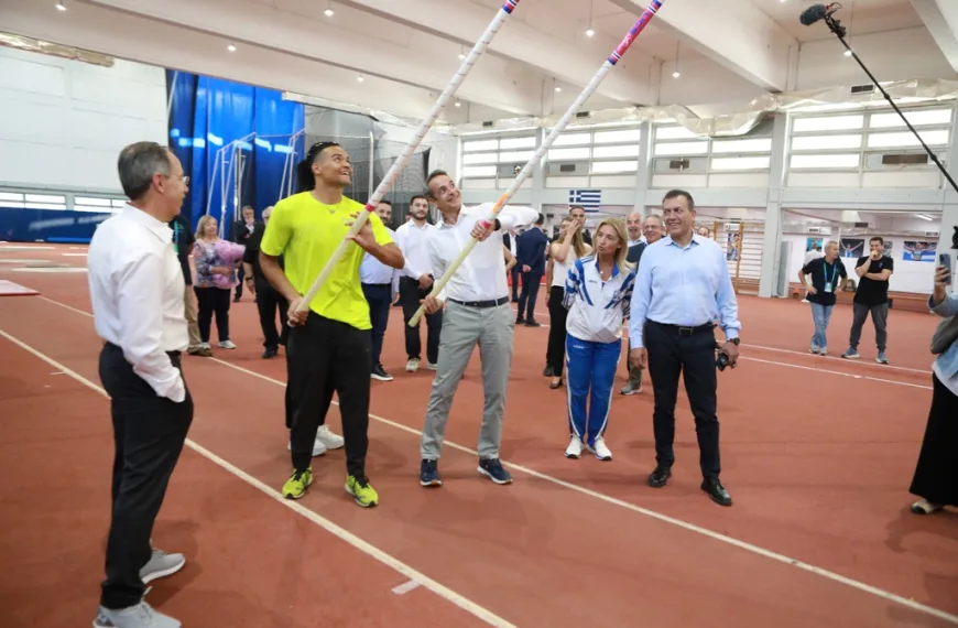 Στο ΟΑΚΑ ο Μητσοτάκης: Έμαθε τα μυστικά του επί κοντώ από τον Καραλή – Τετ α τετ με Τεντόγλου