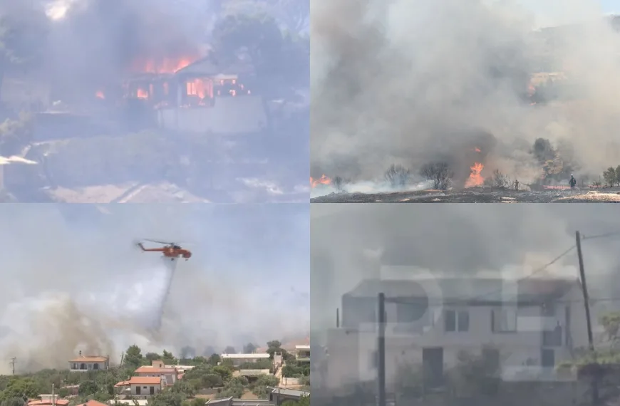 Ανεξέλεγκτη η φωτιά στην Κερατέα -Καίγονται σπίτια, συνεχείς εκκενώσεις και 52 απεγκλωβισμοί