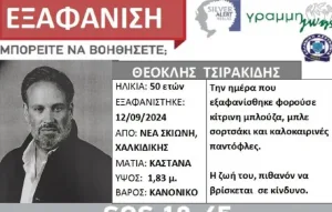 Ένα θρίλερ βρίσκεται σε εξέλιξη στη Χαλκιδική με την εξαφάνιση του Θεοκλή Τσιρακίδη, 50χρονου επιχειρηματία που δραστηριοποιείται στον τουριστικό τομέα. Τα ίχνη του χάθηκαν στις 12 Σεπτεμβρίου από την περιοχή της Νέας Σκιώνης, ενώ η οικογένειά του, ιδιαίτερα ο πατέρας του, βρίσκεται σε απόγνωση, ανησυχώντας για την κατάστασή του. Οι αρχές προχώρησαν στη δημοσιοποίηση των … Συνεχίστε να διαβάζετε το Χαλκιδική:Αγωνία για την εξαφάνιση του επιχειρηματία Θεοκλή Τσιρακίδη- Το στίγμα του κινητού.