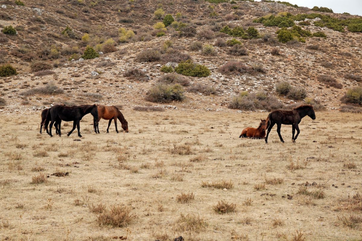 Στο οροπέδιο της Σκαφιδιάς, τα περήφανα ημιάγρια άλογα της Ζήρειας απολαμβάνουν την ελευθερία τους στη φύση/Photo: Νίκος Κόκκας