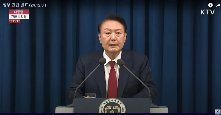 Ο πρόεδρος της Νότιας Κορέας Γιουν Σουκ Γιολ κήρυξε «στρατιωτικό νόμο έκτακτης ανάγκης», κατηγορώντας την αντιπολίτευση της χώρας ότι ελέγχει το κοινοβούλιο και παραλύει την κυβέρνηση με αντικρατικές δραστηριότητες. Ο Γιουν Σουκ Γιολ έκανε την ανακοίνωση κατά τη διάρκεια τηλεοπτικής ενημέρωσης και τόνισε πως το βήμα αυτό είναι κρίσιμο για την υπεράσπιση της συνταγματικής τάξης … Συνεχίστε να διαβάζετε το Νότια Κορέα: Ο πρόεδρος κήρυξε στρατιωτικό νόμο-Καλεί τον κόσμο στους δρόμους η αντιπολίτευση.