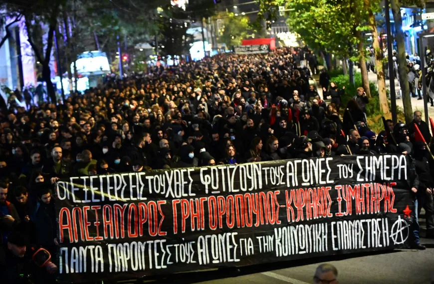 Λίγο πριν τις 21:00 ολοκληρώθηκε η πορεία για την επέτειο από την δολοφονία του Αλέξη Γρηγορόπουλου. Πάνω από 10.000 κόσμου στην πορεία της Αθήνας με κεντρικό σύνθημα «Οι εξεγέρσεις του χθες φωτίζουν τους αγώνες του σήμερα» συγκεντρώθηκαν αρχικά στα Προπύλαια και κατευθύνθηκαν στο σημείο όπου ο ειδικός φρουρός, Επαμεινώνδας Κορκονέας, πυροβόλησε και σκότωσε τον 15χρονο … Συνεχίστε να διαβάζετε το Μαζικές πορείες σε Αθήνα και Θεσσαλονίκη για τον Αλέξη Γρηγορόπουλο-Ένταση και δεκάδες προσαγωγές (εικόνες, vid).