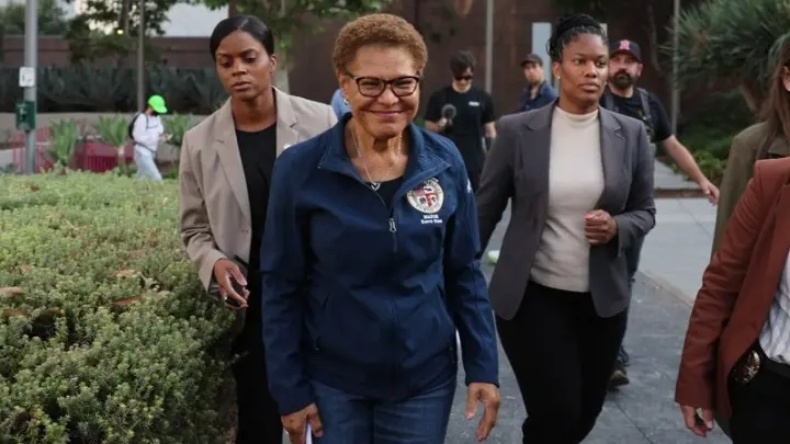 Η δήμαρχος του Λος Άντζελες Κάρεν Μπας ευχήθηκε, χθες, σε ένα δελτίο Τύπου, «την επιστροφή των πολιτών στα σπίτια τους για να τα ανοικοδομήσουν όσο το δυνατόν ταχύτερα και ασφαλέστερα», υπογραμμίζοντας ότι θα επιδειχθεί «μηδενική ανοχή στο έγκλημα».