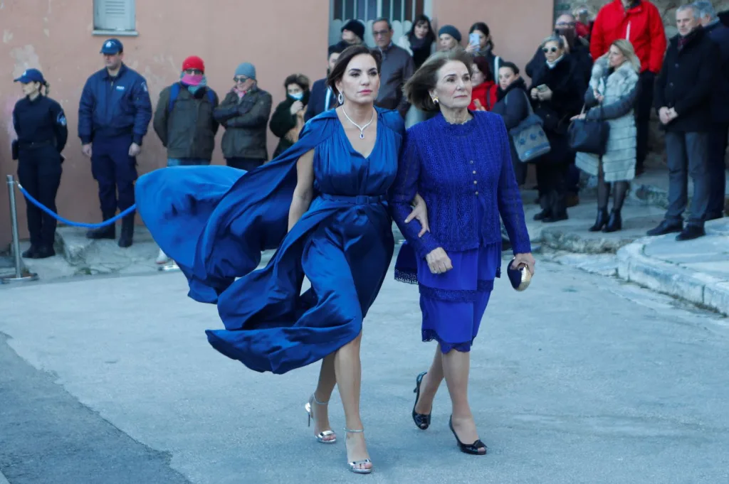 Στην εκκλησία βρίσκεται και ο Γιάννης Βαρδινογιάννης με τη σύζυγό του, Μελίσσα Γκρόμελ. Ανάμεσα στους προσκεκλημένους και η Όλγα Κεφαλογιάννη και η Μαρία Γρυλλάκη, οι οποίες είναι εξαδέλφες της Χρυσής Βαρδινογιάννη.