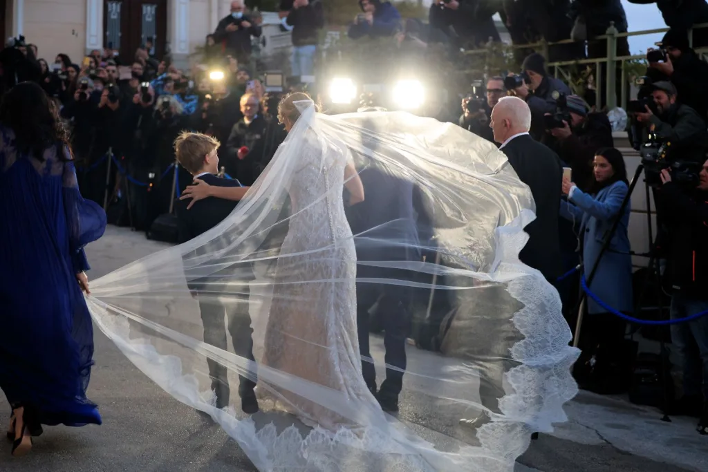 Ήδη η νύφη κατά την άφιξή της έκλεψε τις εντυπώσεις με τον Γιώργο Βαρδινογιάννη να είναι αυτός που την συνόδευσε στην εκκλησία.