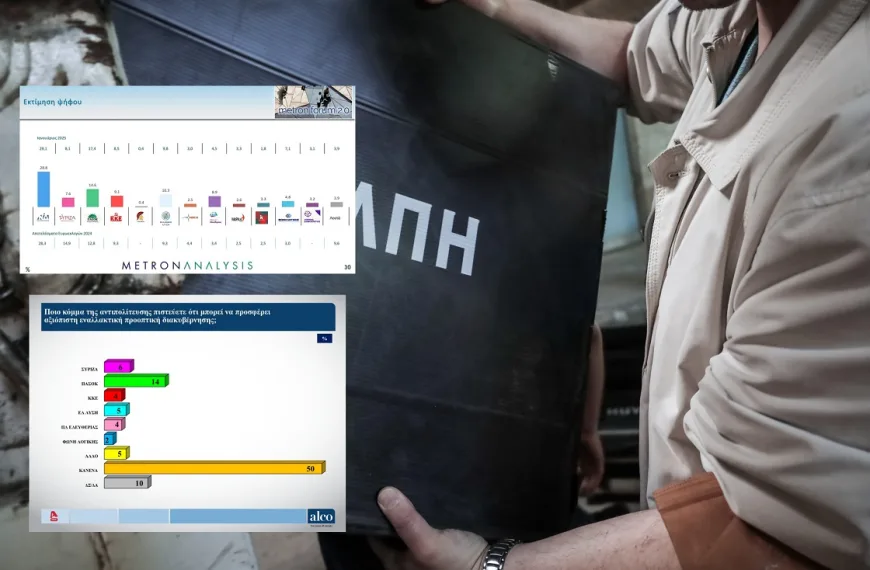 Μεγάλη δυσαρέσκεια και οργή που επικρατεί στην κοινωνία για την υπόθεση των Τεμπών αποτυπώνουν οι δύο νέες δημοσκοπήσεις που παρουσιάστηκαν σήμερα σε ALCO (Alpha) και Metron Analysis (Mega). Η Νέα Δημοκρατία διατηρεί μεν ισχυρό προβάδισμα εισπράττοντας την κυβερνητική φθορά ενώ το δεύτερο ΠΑΣΟΚ δεν μπορεί να εκμεταλλευτεί πολιτικά την πτώση αλλά χάνει και αυτό δυνάμεις. … Συνεχίστε να διαβάζετε το Metron Analysis-Alco: Κυριαρχία ΝΔ αλλά με φθορά-Δυσαρέσκεια για τους χειρισμούς στα Τέμπη-50% δεν βλέπει εναλλακτική.
