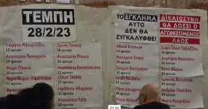Τέμπη: Τοιχοκόλλησαν τα ονόματα των θυμάτων στον σταθμό Λαρίσης
