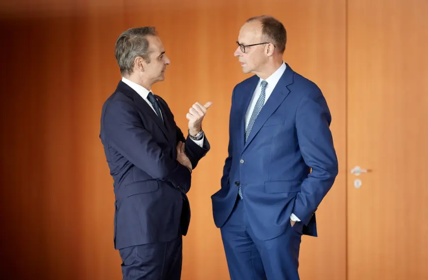 Κατά τις τοποθετήσεις τους πριν από την κοινή Συνέντευξη Τύπου του Κυριάκου Μητσοτάκη και του Γερμανού καγκελάριου Φρίντριχ Μερτς στο Βερολίνο, ο έλληνας πρωθυπουργός επεσήμανε τη νέα δυναμική των ελληνογερμανικών σχέσεων και τον Μερτς να προειδοποιεί τη Ρωσία με κυρώσεις αν δεν αποδεχθεί την ευρωπαϊκή πρόταση για εκεχειρία στην Ουκρανία. Ο Κυριάκος Μητσοτάκης εξέφρασε τη χαρά του που είναι ο … Συνεχίστε να διαβάζετε το Μητσοτάκης: Κατανόηση ως προς τα Eurofighter- Μερτς: Εργαζόμαστε στην εμβάθυνση της άμυνας.