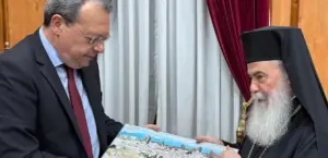 Ανάρτηση στα μέσα κοινωνικής δικτύωσης για την προ ημερών επίσκεψη της αντιπροσωπείας του ΣΥΡΙΖΑ – ΠΣ στα Ιεροσόλυμα και την Δυτική Όχθη έκανε νωρίτερα σήμερα ο πρόεδρος του ΣΥΡΙΖΑ, Σωκράτης Φάμελλος. Στην ανάρτηση αναφέρεται στη συνάντηση με τον Πατριάρχη Ιερουσαλήμ και Παλαιστίνης Θεόφιλο, με τον οποίο είχαν συζήτηση σχετικά με τον ρόλο που διαδραματίζει το Πατριαρχείο στην περιοχή ως πυλώνας σταθερότητας, διαλόγου και συμβίωσης των κοινοτήτων. … Συνεχίστε να διαβάζετε το Φάμελλος από Ιεροσόλυμα: Χρέος μας να στηρίξουμε το Ελληνορθόδοξο στοιχείο σε Ιερουσαλήμ και Δυτική Όχθη.
