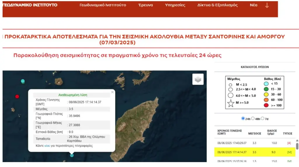 Κάρπαθος: Σεισμός 3,5 Ρίχτερ Ειδήσεις Ελλάδα Η Συντακτική ομάδα του Libre 8 Ιουνίου, 2025 Share Tweet Email Ασθενής σεισμική δόνηση μεγέθους 3,5 βαθμών της κλίμακας Ρίχτερ σημειώθηκε στα ανοικτά της Καρπάθου.