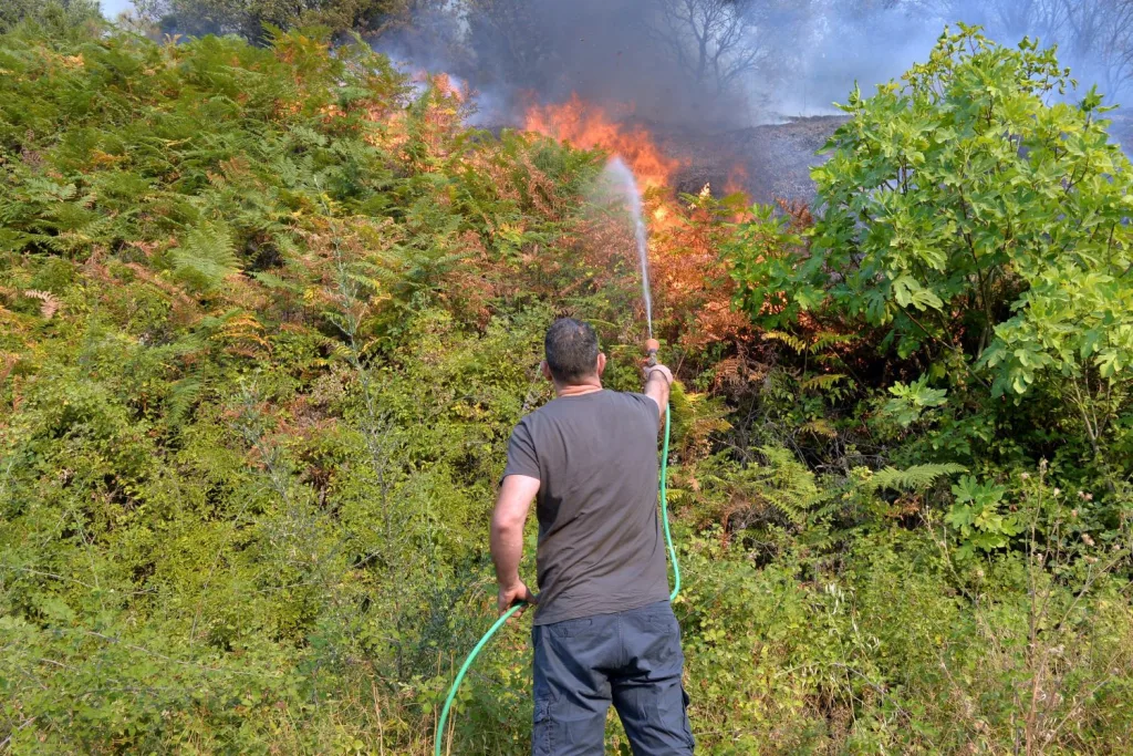 Δυνάμεις της Πυροσβεστικής υπηρεσίας, στελέχη της πολιτικής προστασίας του Δήμου Δυτικής Λέσβου και εθελοντές μαζί με αεροπλάνα PZL επιχειρούν στην περιοχή των υψωμάτων πάνω από τη Μονή Λειμώνος για να σβήσουν πυρκαγιά που ξέσπασε περίπου στις 4 το απόγευμα σε έκταση με χαμηλή βλάστηση.