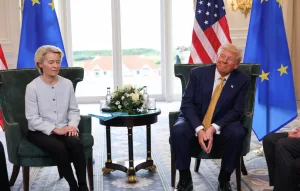 Ο Πρόεδρος των ΗΠΑ Ντόναλντ Τραμπ δήλωσε ότι υπάρχουν καλές πιθανότητες οι ΗΠΑ και η ΕΕ να καταλήξουν σε εμπορική συμφωνία, κάνοντας λόγο για τρία ή τέσσερα βασικά σημεία διαφωνίας, σύμφωνα με το πρακτορείο Reuters. Ο Τραμπ έκανε αυτή τη δήλωση στην αρχή της συνάντησης με την Πρόεδρο της Κομισιόν Ούρσουλα φον ντερ Λάιεν στο … Συνεχίστε να διαβάζετε το Τραμπ και ντερ Λάιεν βλέπουν πιθανότητες 50-50 για συμφωνία δασμών- “Όχι κάτω από 15%” (vid).