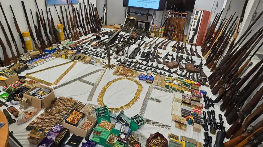 Οι αρχές εντόπισαν τουλάχιστον 100 όπλα και χιλιάδες σφαίρες στο σπίτι απόστρατου της Πολεμικής Αεροπορίας στο Κιάτο, σε επιχείρηση που αποκαλύπτει υπόθεση παράνομου εμπορίου όπλων.