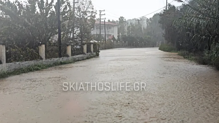 “Βούλιαξε” η Σκιάθος: Δρόμοι μετατράπηκαν σε ποτάμια από την κακοκαιρία