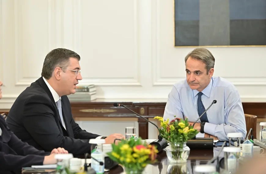 Στο Μέγαρο Μαξίμου υποδέχτηκε ο Μητσοτάκης τον Τζιτζικώστα- Όσα συζήτησαν