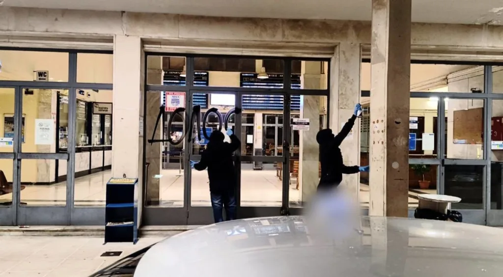 Λάρισα: Παρέμβαση του “Ρουβίκωνα” στο κτίριο του ΟΣΕ για την σημερινή δίκη