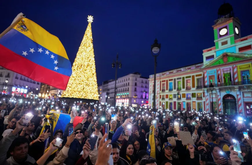 Πολλές χιλιάδες διαδηλωτές συγκεντρώθηκαν σήμερα το πρωί μπροστά από το κτίριο της αμερικανικής πρεσβείας στη Μαδρίτη για να καταδικάσουν την «ιμπεριαλιστική επιθετικότητα» μετά την απαγωγή του προέδρου της Βενεζουέλας Νικολάς Μαδούρο κατά τη διάρκεια μιας αμερικανικής στρατιωτικής επιχείρησης. Διαδηλωτές κρατούσαν πολλά πλακάτ, συμπεριλαμβανομένου ενός που απεικόνιζε τον Ντόναλντ Τραμπ να καταπίνει λαίμαργα ένα μπιτόνι λαδιού … Συνεχίστε να διαβάζετε το Μαδρίτη: Χιλιάδες διαδηλωτές στην αμερικανική πρεσβεία καταγγέλλουν “ιμπεριαλιστική επιθετικότητα” στη Βενεζουέλα.