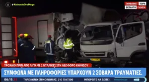 Σφοδρή σύγκρουση δύο φορτηγών στον Κηφισό- Κυκλοφοριακό πρόβλημα στο σημείο