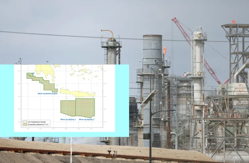 Ένα ακόμη βήμα στην κατεύθυνση της ανάπτυξης του τομέα των υδρογονανθράκων στην χώρα μας, γίνεται σήμερα με την υπογραφή στο Μέγαρο Μαξίμου, παρουσία του πρωθυπουργού, Κυριάκου Μητσοτάκη, των συμφωνιών μίσθωσης μεταξύ του ελληνικού κράτους και της κοινοπραξίας Chevron-Helleniq Energy που αφορούν την παραχώρηση αποκλειστικών δικαιωμάτων έρευνας και εκμετάλλευσης υδρογονανθράκων σε θαλάσσιες περιοχές νότια της Πελοποννήσου και της Κρήτης.